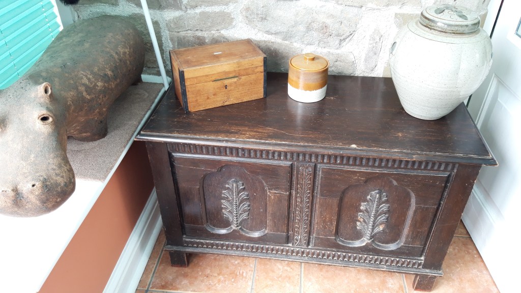 So, we each worked on our own projects for the majority of the day and then came together for food and an evening writing challenge, which we had to fulfill in half an hour – alarms set! On the first night, that meant writing something suggested by three random words from a book. These were: Conflict, It and Previous. On the second day, we had mosied around the numerous antique shops in Leominster, for the afternoon, and secretly chosen an object to write about. Antiques and objects were overwhelming, but with only half and hour to write, I had to make a snappy decision about which it would be and dive in. Sometimes the things you find hardest become the greatest victories. I felt that with this. On the third night, we had to write a dialogue as a play for three characters and then take a part and read it between us. Such fun! Our final challenge was to play a game of Sedecordle and include the resulting sixteen words in a piece of prose. I was the only one to get all sixteen words in, but it was a daft bit of writing!